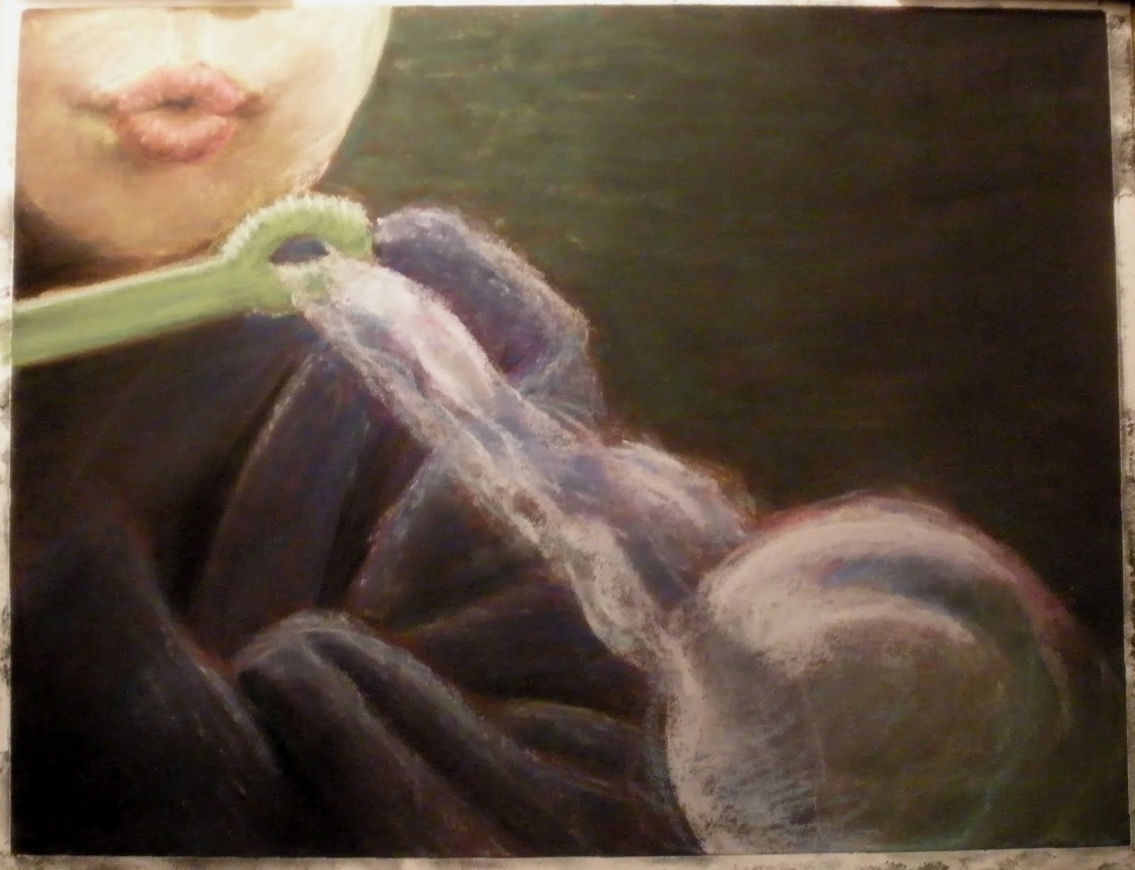 So I usually visit my parent's on Sundays for dinner and today I decided to head up there earlier than usual with my bag of pastels, which was already packed from my figure session yesterday. I had printed up pictures that I wanted to work on for my movement series and started one. I'm really happy with how it turned out. A photographer that I"m working with had emailed me several pictures to get my input and when I enlarged them online I zoomed in much further than I anticipated. Well this turned out to be one of those happy errors and I fell in love with the zoomed in pictures more than the photo as a whole. I started one of them and still have to work out some of the composition so that the focus of the picture is where I want it to be. But I really like it and have impressed myself (don't you love it when that happens?). Here is the first of two bubble pictures of the series. Please let me know what you think!